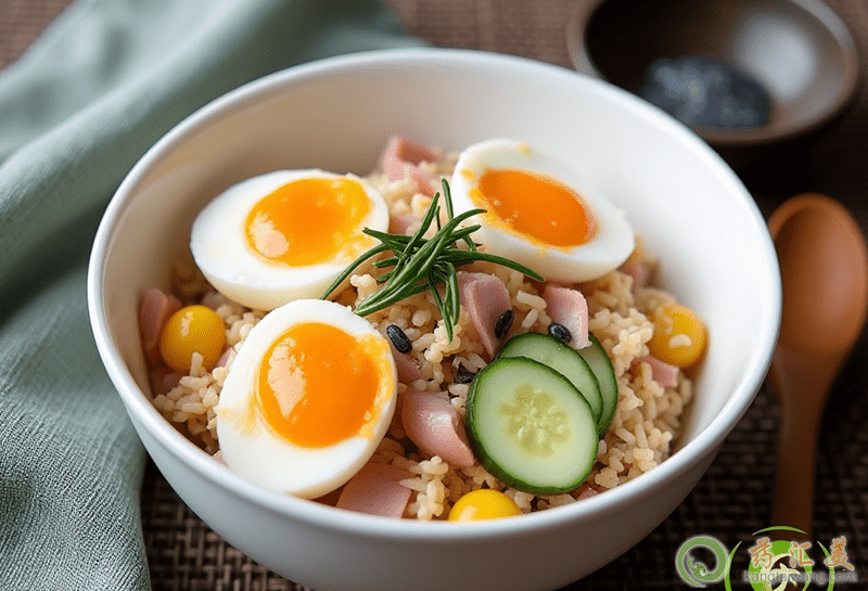 材料:土豆150克,黃瓜50克,熟雞蛋一個,圣女果2個,無蛋黃沙拉醬3克,食鹽,芝麻海苔碎少許。