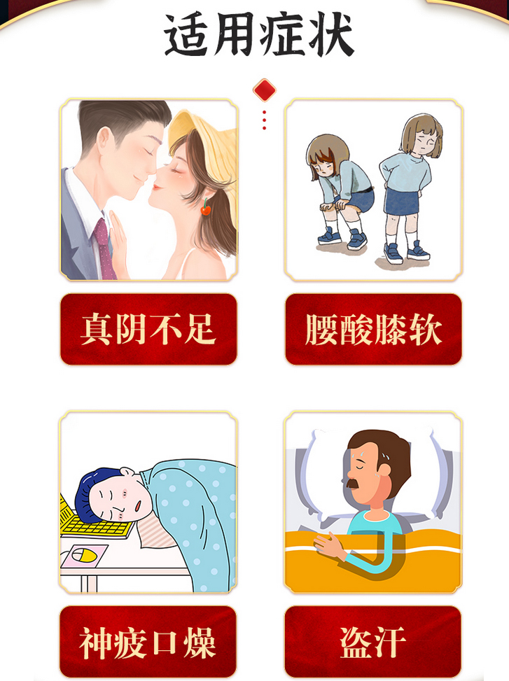 [功能主治]滋腎補陰。用于真陰不足,腰酸膝軟,盜汗,神疲口燥。
